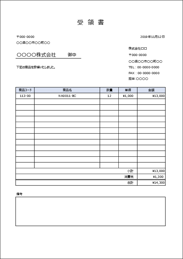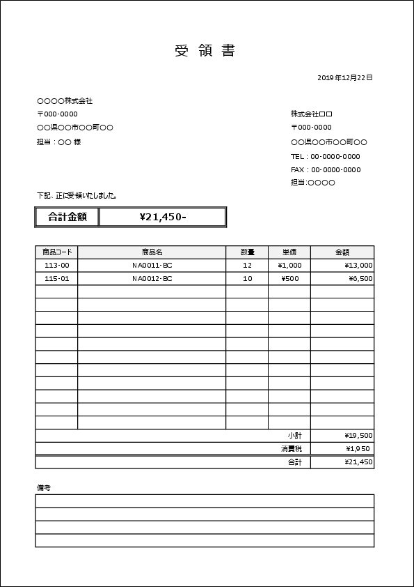 受領書テンプレート(Word・Excel形式|無料ダウンロード)