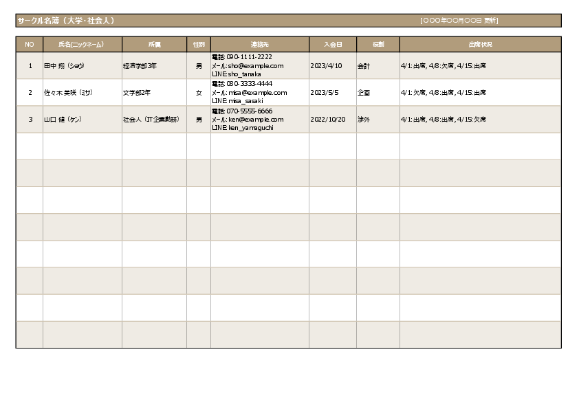 今回は、汎用的な名簿から従業員名簿、イベント、サークル、教育系名簿など様々なテンプレートを紹介しました。