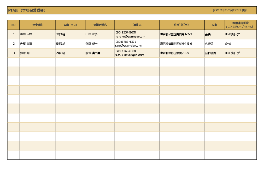 緊急時の連絡体制を整えるためのもの。電話番号順や伝達順に並ぶことが多い