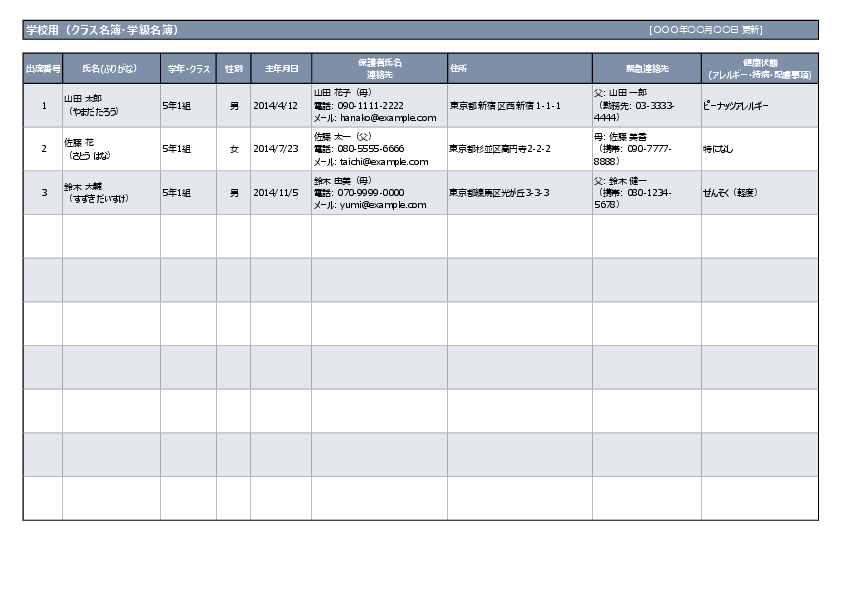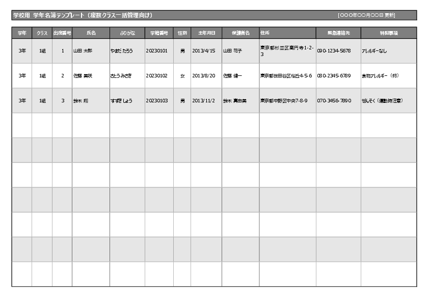 その他、名簿テンプレートに関連のあるテンプレートは以下を参考にして下さい。