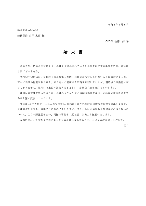 機密情報漏洩の始末書|社内・取引先情報の管理不備