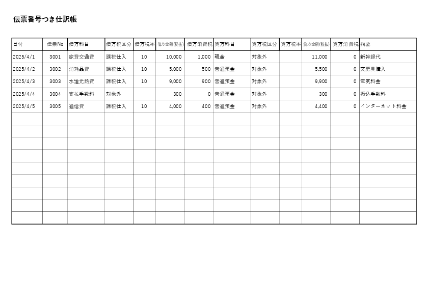 仕訳帳テンプレートの詳細(サンプル画像つき)