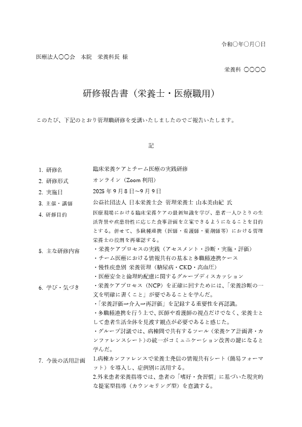 栄養士・医療職用 研修報告書テンプレート